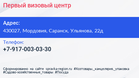 Первый визовый центр по адресу 430027, Мордовия, Саранск, Ульянова, 22д в дальнейшем Организация, размещена в следующих категориях: