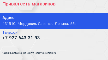 Привал, сеть магазинов по адресу 431510, Мордовия, Саранск, Ленина, 65а в дальнейшем Организация, размещена в следующих категориях: