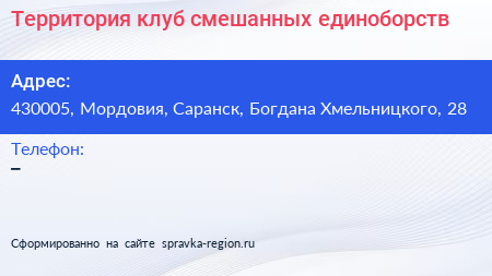 Территория, клуб смешанных единоборств по адресу 430005, Мордовия, Саранск, Богдана Хмельницкого, 28 в дальнейшем Организация, размещена в следующих категориях: