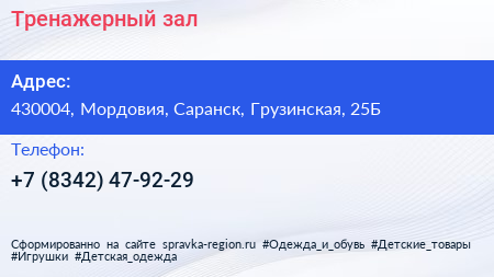 Тренажерный зал по адресу 430004, Мордовия, Саранск, Грузинская, 25Б в дальнейшем Организация, размещена в следующих категориях: