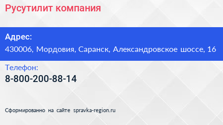 Русутилит, компания по адресу 430006, Мордовия, Саранск, Александровское шоссе, 16 в дальнейшем Организация, размещена в следующих категориях: