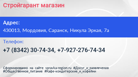 Стройгарант, магазин по адресу 430013, Мордовия, Саранск, Никула Эркая, 7а в дальнейшем Организация, размещена в следующих категориях: