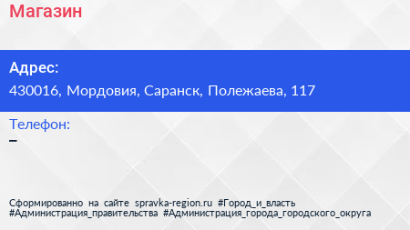 Магазин по адресу 430016, Мордовия, Саранск, Полежаева, 117 в дальнейшем Организация, размещена в следующих категориях: