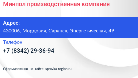 Минпол, производственная компания по адресу 430006, Мордовия, Саранск, Энергетическая, 49 в дальнейшем Организация, размещена в следующих категориях: