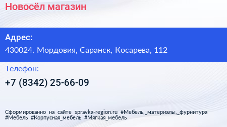 Новосёл, магазин по адресу 430024, Мордовия, Саранск, Косарева, 112 в дальнейшем Организация, размещена в следующих категориях: