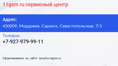 11gsm.ru, сервисный центр по адресу 430009, Мордовия, Саранск, Севастопольская, 7/1 в дальнейшем Организация, размещена в следующих категориях: