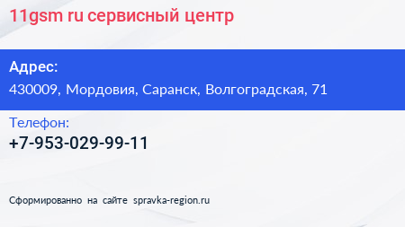 11gsm.ru, сервисный центр по адресу 430009, Мордовия, Саранск, Волгоградская, 71 в дальнейшем Организация, размещена в следующих категориях: