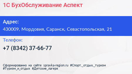1С: БухОбслуживание. Аспект по адресу 430009, Мордовия, Саранск, Севастопольская, 21 в дальнейшем Организация, размещена в следующих категориях: