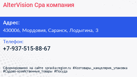 AlterVision Cpa, компания по адресу 430006, Мордовия, Саранск, Лодыгина, 3 в дальнейшем Организация, размещена в следующих категориях: