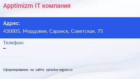 Apptimizm, IT-компания по адресу 430005, Мордовия, Саранск, Советская, 75 в дальнейшем Организация, размещена в следующих категориях: