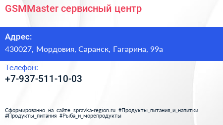 GSMMaster, сервисный центр по адресу 430027, Мордовия, Саранск, Гагарина, 99а в дальнейшем Организация, размещена в следующих категориях:
