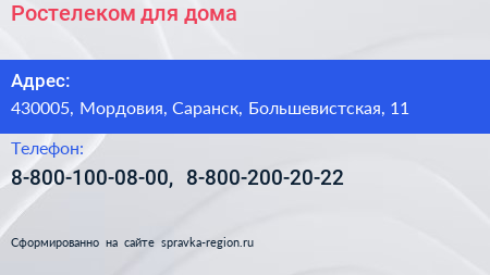Ростелеком для дома по адресу 430005, Мордовия, Саранск, Большевистская, 11 в дальнейшем Организация, размещена в следующих категориях: