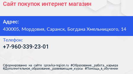 Сайт покупок, интернет-магазин по адресу 430005, Мордовия, Саранск, Богдана Хмельницкого, 14 в дальнейшем Организация, размещена в следующих категориях: