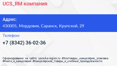 UCS_RM, компания по адресу 430005, Мордовия, Саранск, Крупской, 29 в дальнейшем Организация, размещена в следующих категориях: