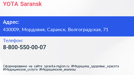 YOTA Saransk по адресу 430009, Мордовия, Саранск, Волгоградская, 71 в дальнейшем Организация, размещена в следующих категориях: