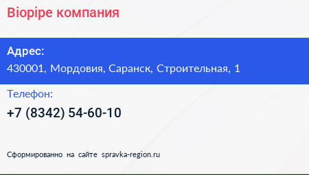 Biopipe, компания по адресу 430001, Мордовия, Саранск, Строительная, 1 в дальнейшем Организация, размещена в следующих категориях: