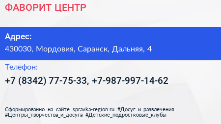 ФАВОРИТ ЦЕНТР по адресу 430030, Мордовия, Саранск, Дальняя, 4 в дальнейшем Организация, размещена в следующих категориях: