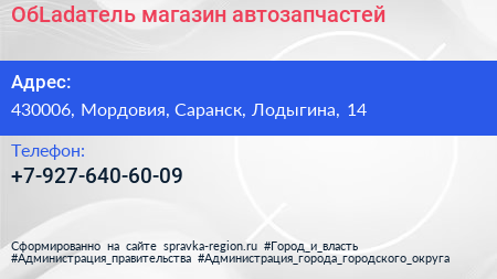 ОбLadaтель, магазин автозапчастей по адресу 430006, Мордовия, Саранск, Лодыгина, 14 в дальнейшем Организация, размещена в следующих категориях: