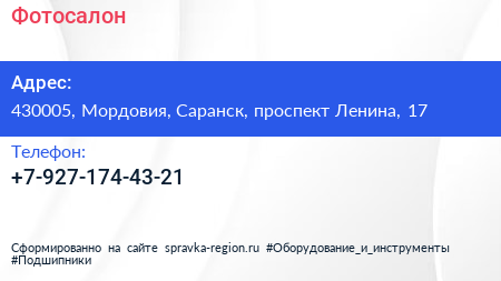 Фотосалон по адресу 430005, Мордовия, Саранск, проспект Ленина, 17 в дальнейшем Организация, размещена в следующих категориях: