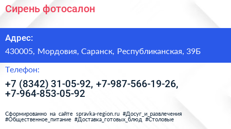 Сирень, фотосалон по адресу 430005, Мордовия, Саранск, Республиканская, 39Б в дальнейшем Организация, размещена в следующих категориях: