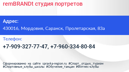 remBRANDt, студия портретов по адресу 430016, Мордовия, Саранск, Пролетарская, 83а в дальнейшем Организация, размещена в следующих категориях: