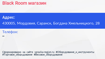 Black Room, магазин по адресу 430005, Мордовия, Саранск, Богдана Хмельницкого, 28 в дальнейшем Организация, размещена в следующих категориях: