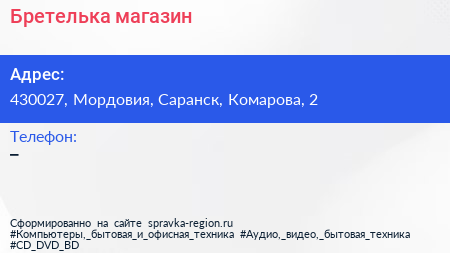 Бретелька, магазин по адресу 430027, Мордовия, Саранск, Комарова, 2 в дальнейшем Организация, размещена в следующих категориях: