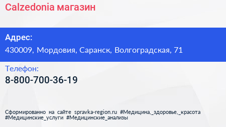 Calzedonia, магазин по адресу 430009, Мордовия, Саранск, Волгоградская, 71 в дальнейшем Организация, размещена в следующих категориях: