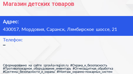 Магазин детских товаров по адресу 430017, Мордовия, Саранск, Лямбирское шоссе, 21 в дальнейшем Организация, размещена в следующих категориях: