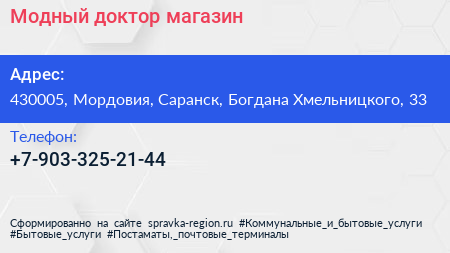 Модный доктор, магазин по адресу 430005, Мордовия, Саранск, Богдана Хмельницкого, 33 в дальнейшем Организация, размещена в следующих категориях: