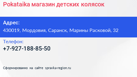 Pokataika, магазин детских колясок по адресу 430019, Мордовия, Саранск, Марины Расковой, 32 в дальнейшем Организация, размещена в следующих категориях: