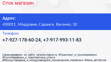 Сток, магазин по адресу 430011, Мордовия, Саранск, Васенко, 32 в дальнейшем Организация, размещена в следующих категориях: