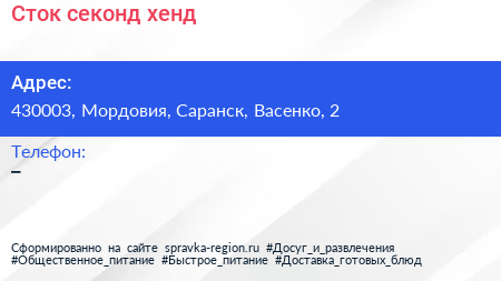 Сток, секонд-хенд по адресу 430003, Мордовия, Саранск, Васенко, 2 в дальнейшем Организация, размещена в следующих категориях: