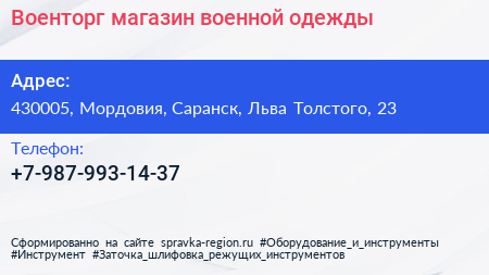 Военторг, магазин военной одежды по адресу 430005, Мордовия, Саранск, Льва Толстого, 23 в дальнейшем Организация, размещена в следующих категориях: