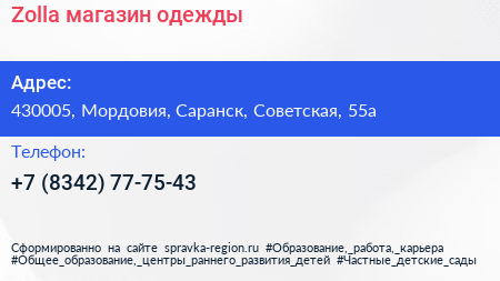 Zolla, магазин одежды по адресу 430005, Мордовия, Саранск, Советская, 55а в дальнейшем Организация, размещена в следующих категориях: