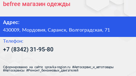 befree, магазин одежды по адресу 430009, Мордовия, Саранск, Волгоградская, 71 в дальнейшем Организация, размещена в следующих категориях: