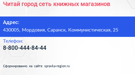 Читай-город, сеть книжных магазинов по адресу 430005, Мордовия, Саранск, Коммунистическая, 25 в дальнейшем Организация, размещена в следующих категориях: