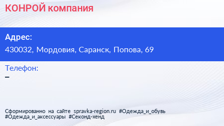 КОНРОЙ, компания по адресу 430032, Мордовия, Саранск, Попова, 69 в дальнейшем Организация, размещена в следующих категориях: