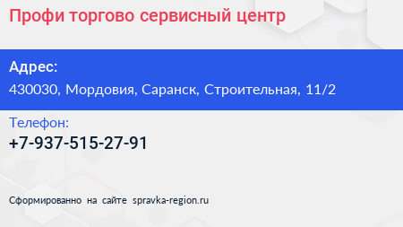 Профи, торгово-сервисный центр по адресу 430030, Мордовия, Саранск, Строительная, 11/2 в дальнейшем Организация, размещена в следующих категориях: