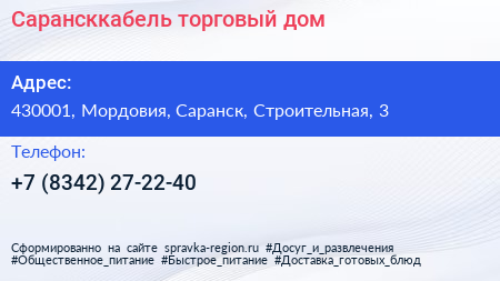Сарансккабель, торговый дом по адресу 430001, Мордовия, Саранск, Строительная, 3 в дальнейшем Организация, размещена в следующих категориях: