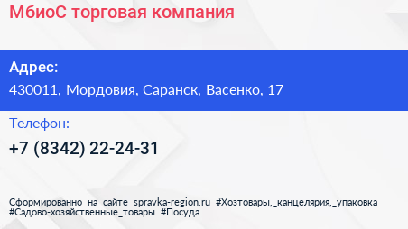 МбиоС, торговая компания по адресу 430011, Мордовия, Саранск, Васенко, 17 в дальнейшем Организация, размещена в следующих категориях: