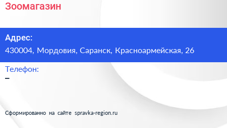 Зоомагазин по адресу 430004, Мордовия, Саранск, Красноармейская, 26 в дальнейшем Организация, размещена в следующих категориях: