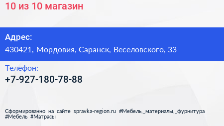 10 из 10, магазин по адресу 430421, Мордовия, Саранск, Веселовского, 33 в дальнейшем Организация, размещена в следующих категориях: