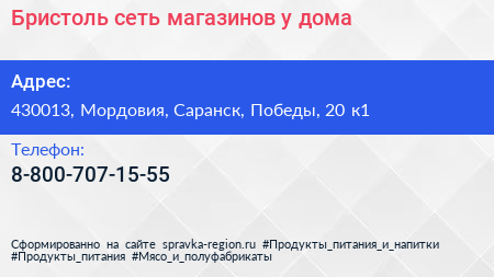 Бристоль, сеть магазинов у дома по адресу 430013, Мордовия, Саранск, Победы, 20 к1 в дальнейшем Организация, размещена в следующих категориях: