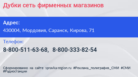Дубки, сеть фирменных магазинов по адресу 430004, Мордовия, Саранск, Кирова, 71 в дальнейшем Организация, размещена в следующих категориях: