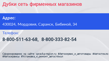 Дубки, сеть фирменных магазинов по адресу 430024, Мордовия, Саранск, Бибиной, 34 в дальнейшем Организация, размещена в следующих категориях: