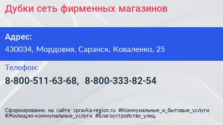 Дубки, сеть фирменных магазинов по адресу 430034, Мордовия, Саранск, Коваленко, 25 в дальнейшем Организация, размещена в следующих категориях: