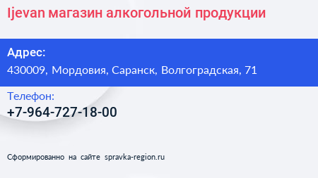 Ijevan, магазин алкогольной продукции по адресу 430009, Мордовия, Саранск, Волгоградская, 71 в дальнейшем Организация, размещена в следующих категориях: