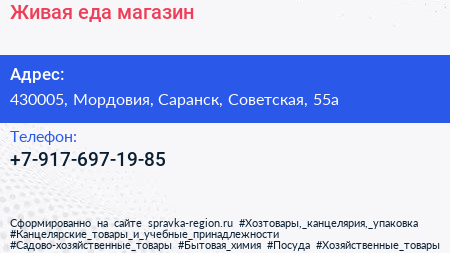 Живая еда, магазин по адресу 430005, Мордовия, Саранск, Советская, 55а в дальнейшем Организация, размещена в следующих категориях: