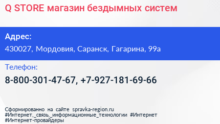 Q STORE, магазин бездымных систем по адресу 430027, Мордовия, Саранск, Гагарина, 99а в дальнейшем Организация, размещена в следующих категориях: